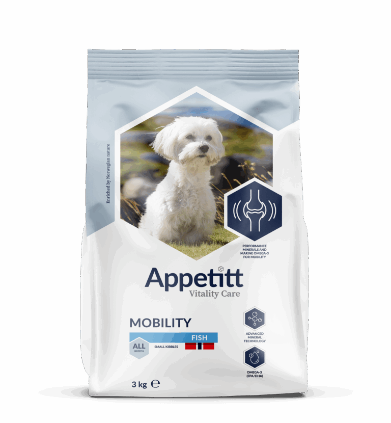 - Appetitt Vitality Care Mobility has a high content of the essential omega-3 fatty acids EPA and DHA, which are important for joints and mobility.